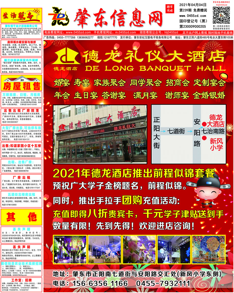 肇東信息網(wǎng)DM報(bào)紙2021年4月4日第239期