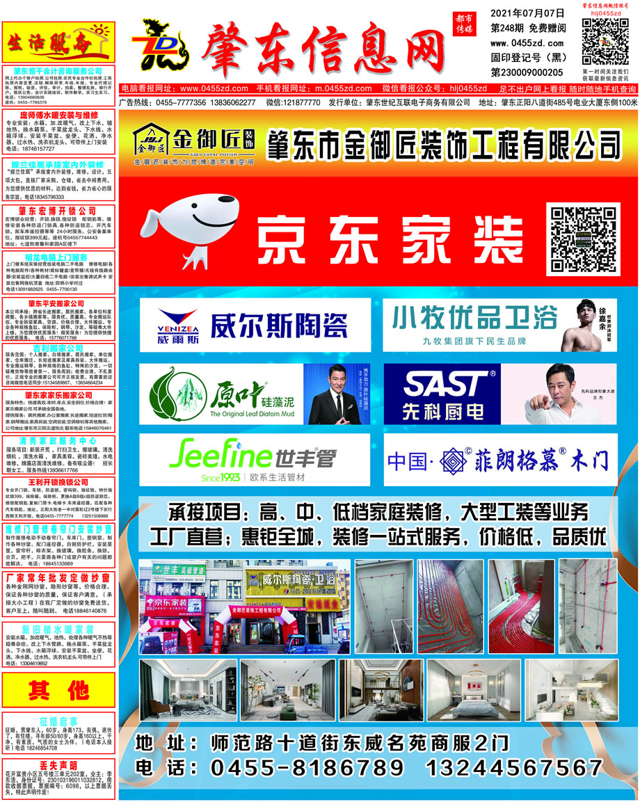 肇東信息網(wǎng)DM報紙2021年7月7日第248期