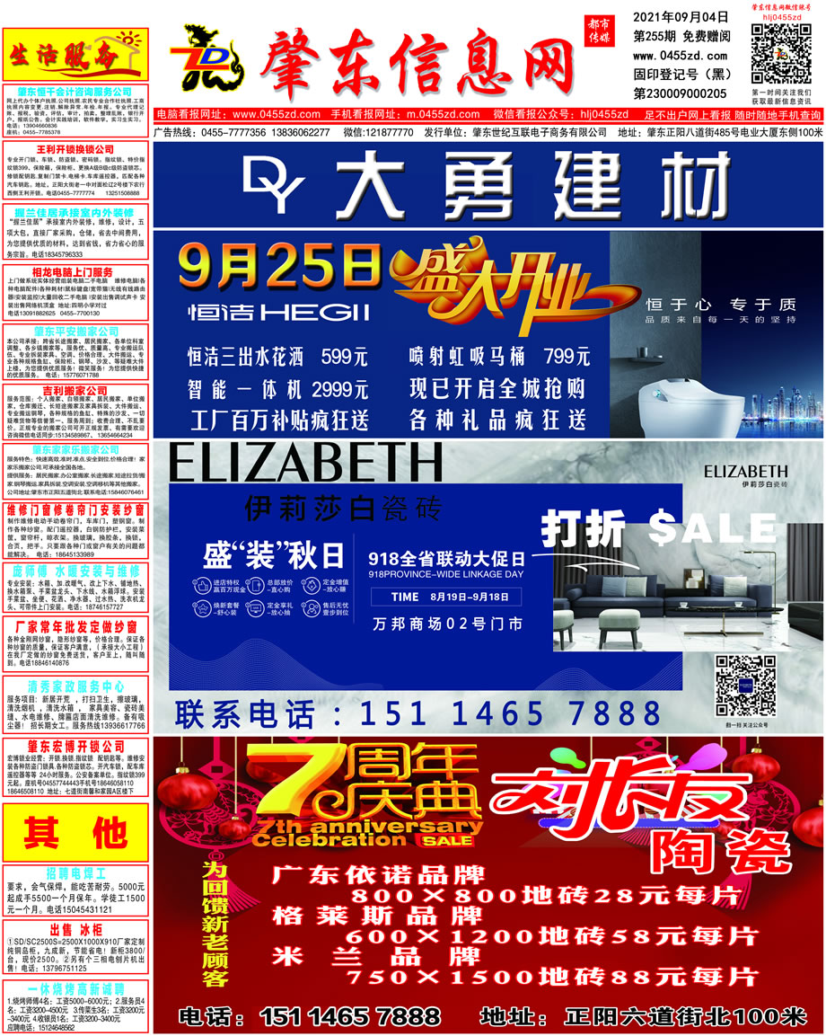 肇東信息網(wǎng)DM報(bào)紙2021年9月4日第255期