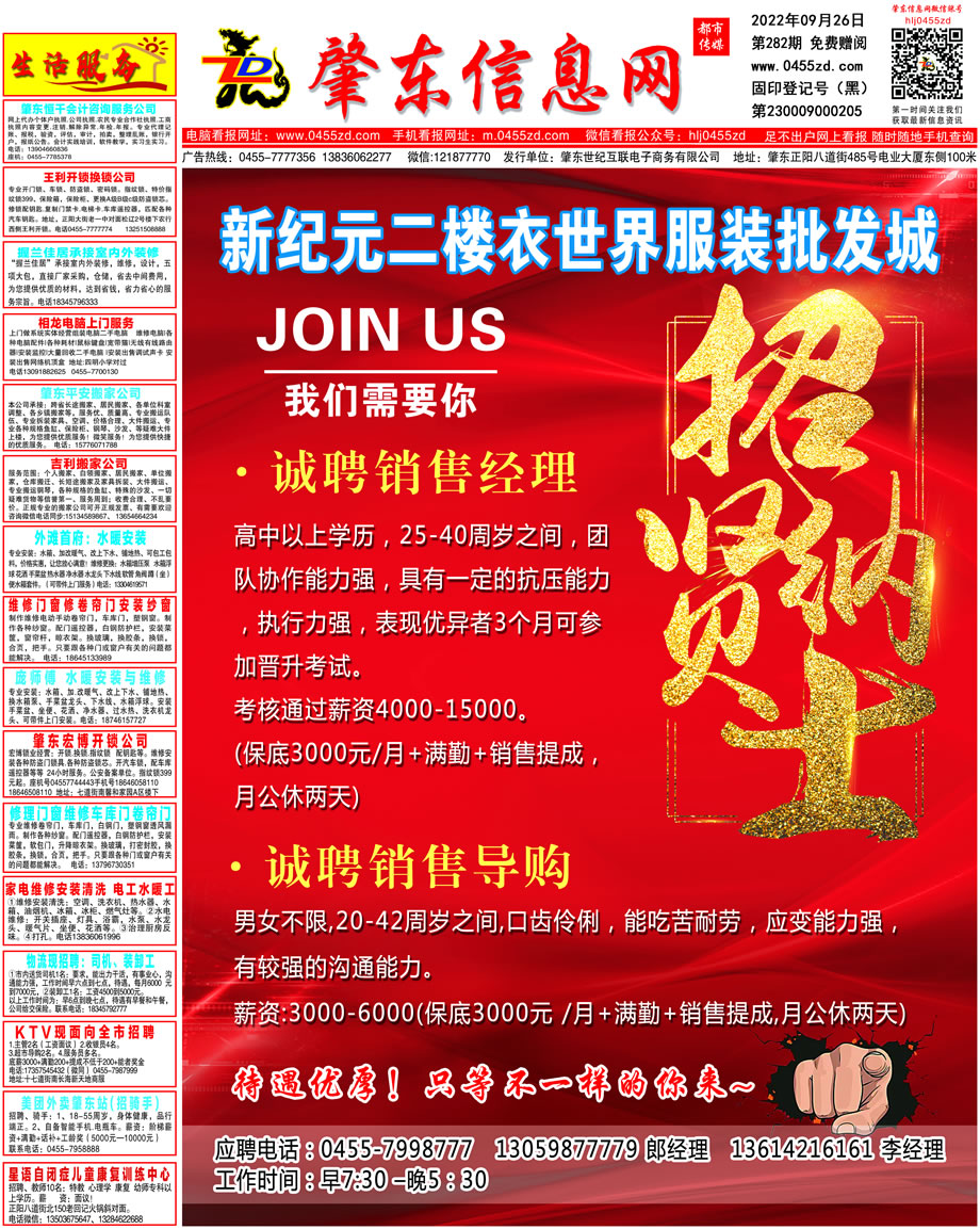 肇東信息網(wǎng)DM報(bào)紙2022年9月26日第282期