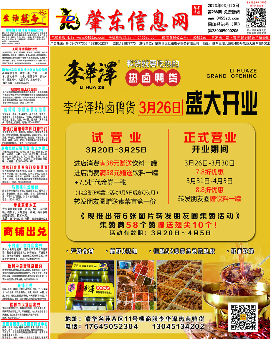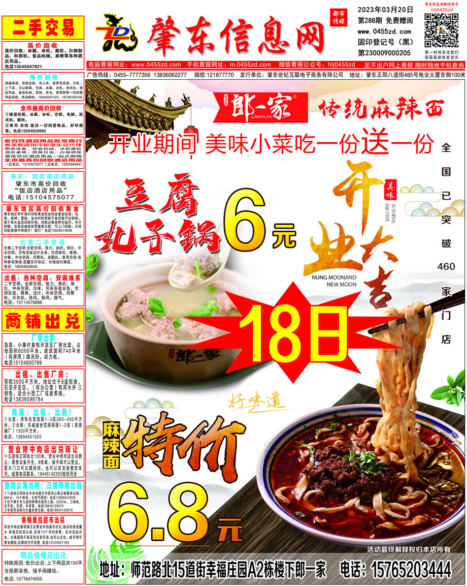 肇東信息網(wǎng)DM報紙2023年3月20日第288期