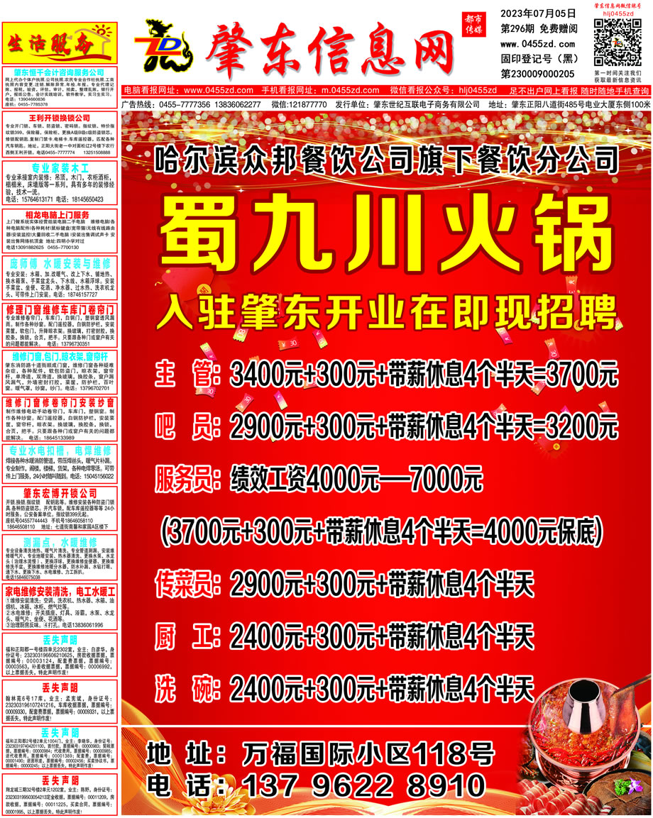 肇東信息網(wǎng)DM報(bào)紙2023年7月5日第296期