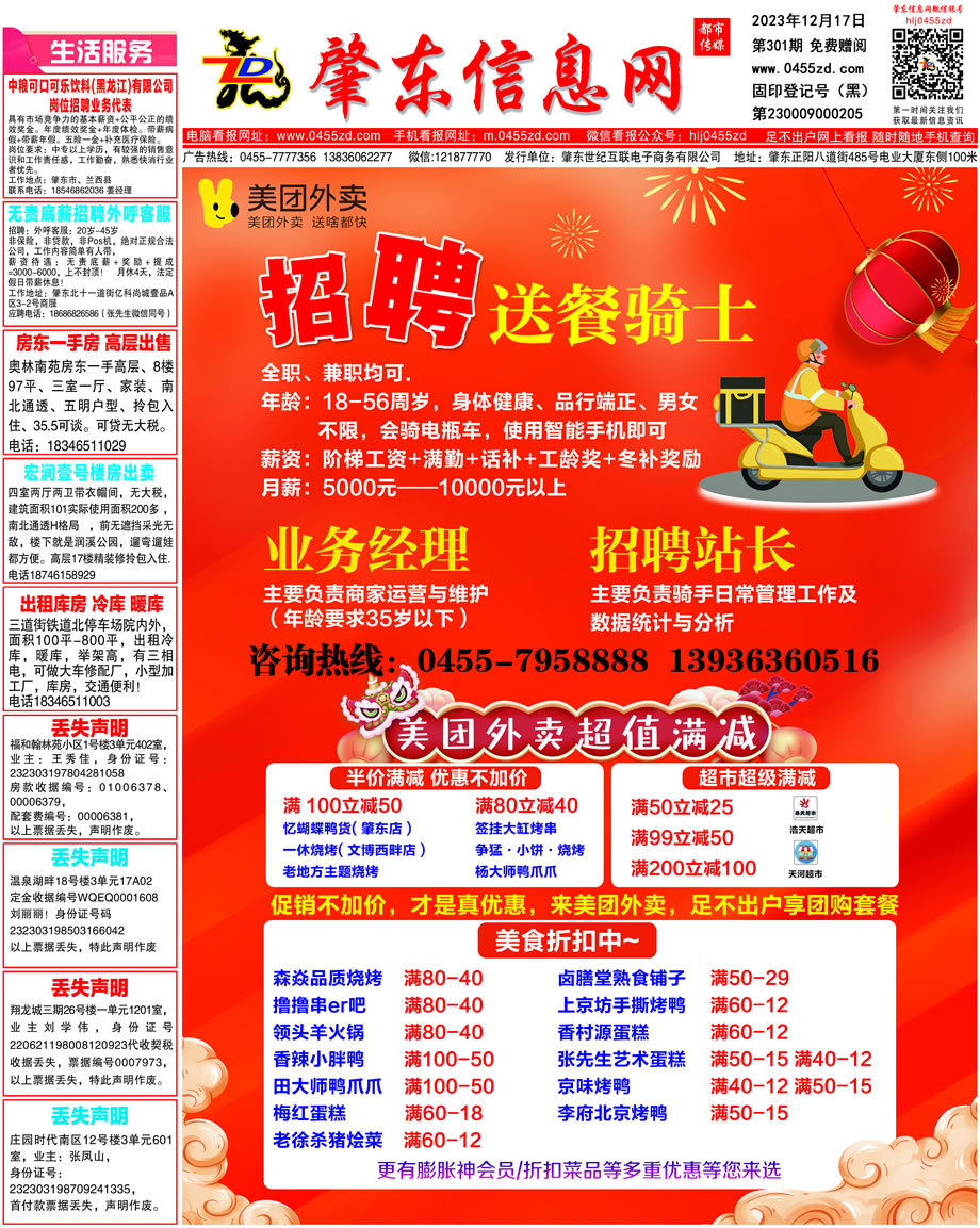 肇東信息網(wǎng)DM報(bào)紙2023年12月17日第301期