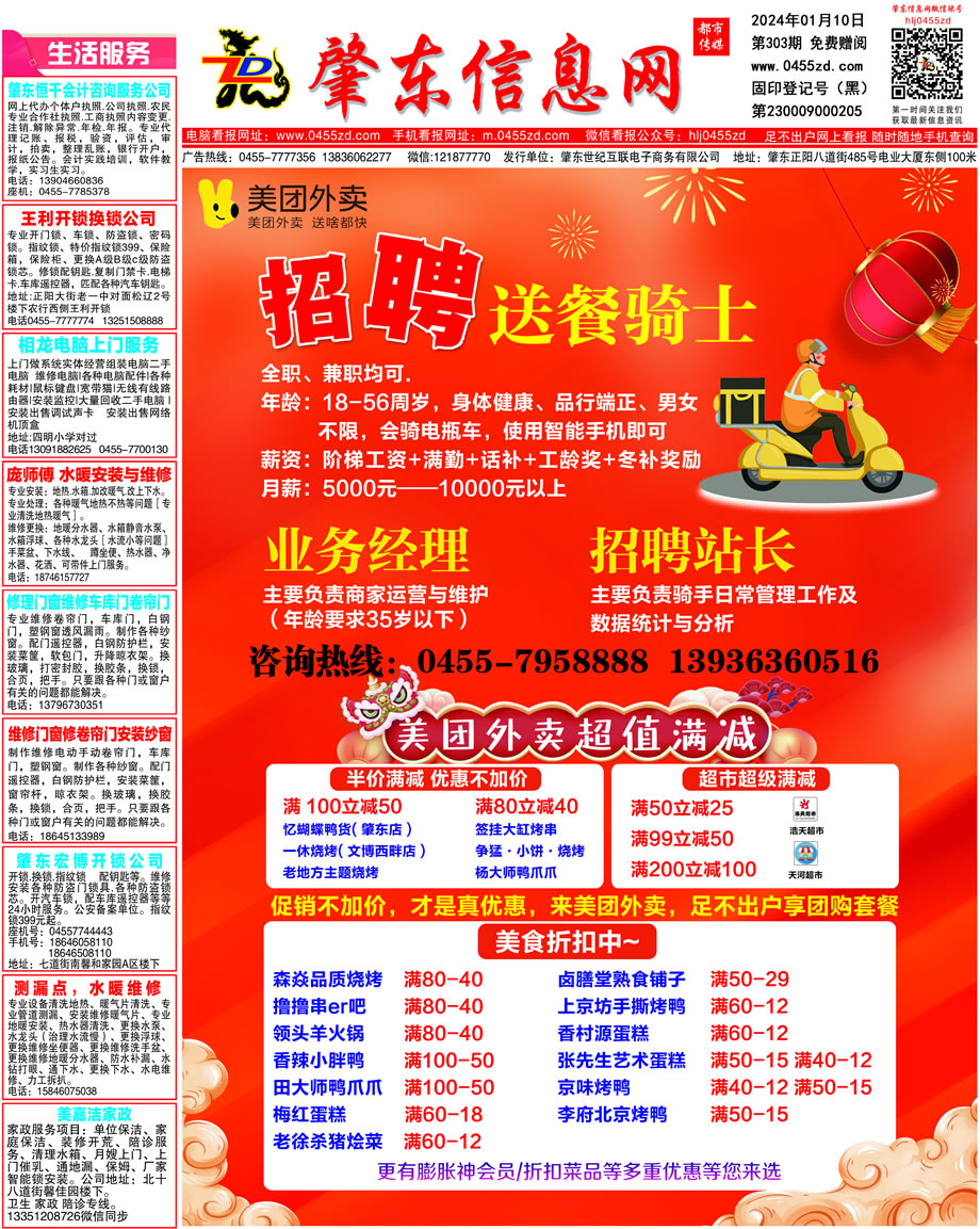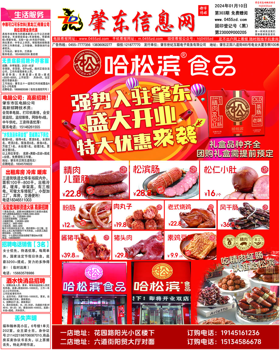 肇東信息網(wǎng)DM報(bào)紙2024年1月10日第303期