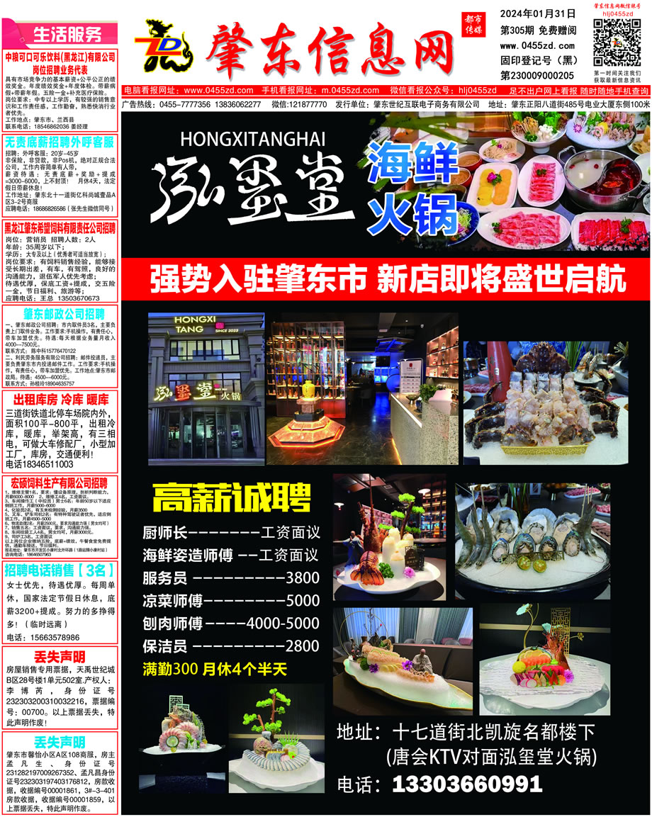 肇東信息網(wǎng)DM報紙2024年1月31日第305期