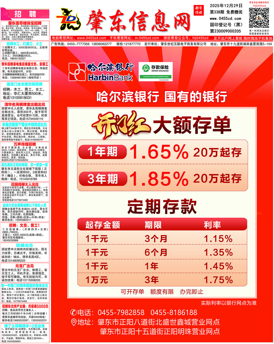 肇東信息網(wǎng)DM報紙2025年12月29日第338期