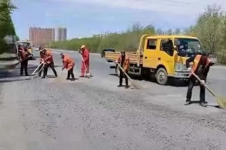肇東市公路管理處:清除路面灑落石子 確保公路通行安全