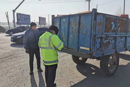 肇東交警大隊(duì)粘貼反光標(biāo)識(shí) 備春耕保安全