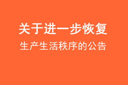 肇東關(guān)于進一步恢復(fù)生產(chǎn)生活秩序的公告