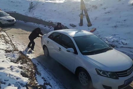 汽車冬季涵洞打滑 肇東公安緊急救援