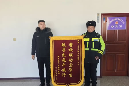 肇東公安:堅(jiān)守校園安全崗 學(xué)校致謝送錦旗