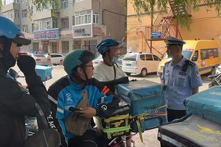 肇東公安交警走進(jìn)外賣企業(yè)開(kāi)展“一盔一帶”宣傳活動(dòng)