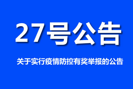 關于實行疫情防控有獎舉報的公告