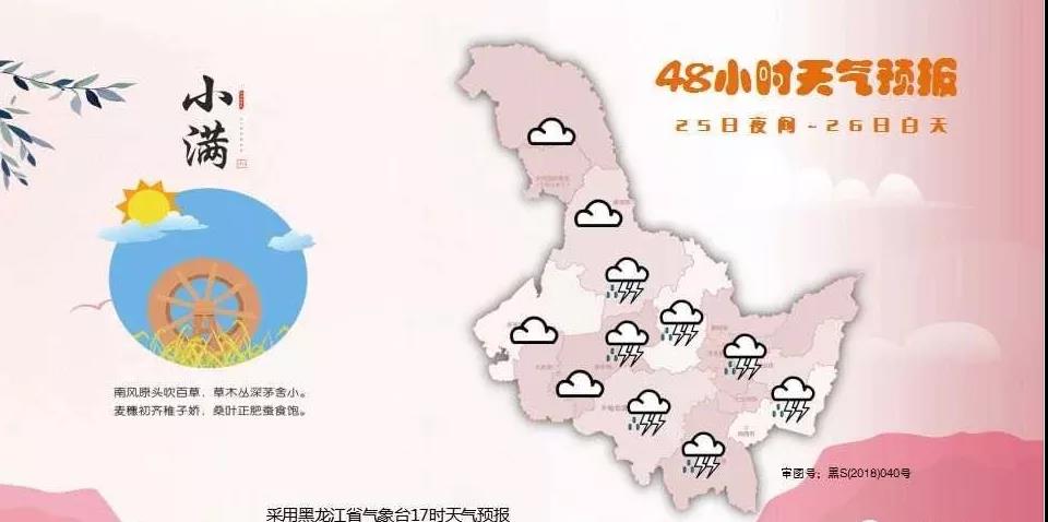 黑龍江省氣象臺(tái)2020年5月25日發(fā)布全省天氣預(yù)報(bào):黑河北部陰有大雨,黑河南部、伊春北部、齊齊哈爾北部、綏化、大慶陰有中雨,其它地區(qū)多云有陣雨或雷陣雨。