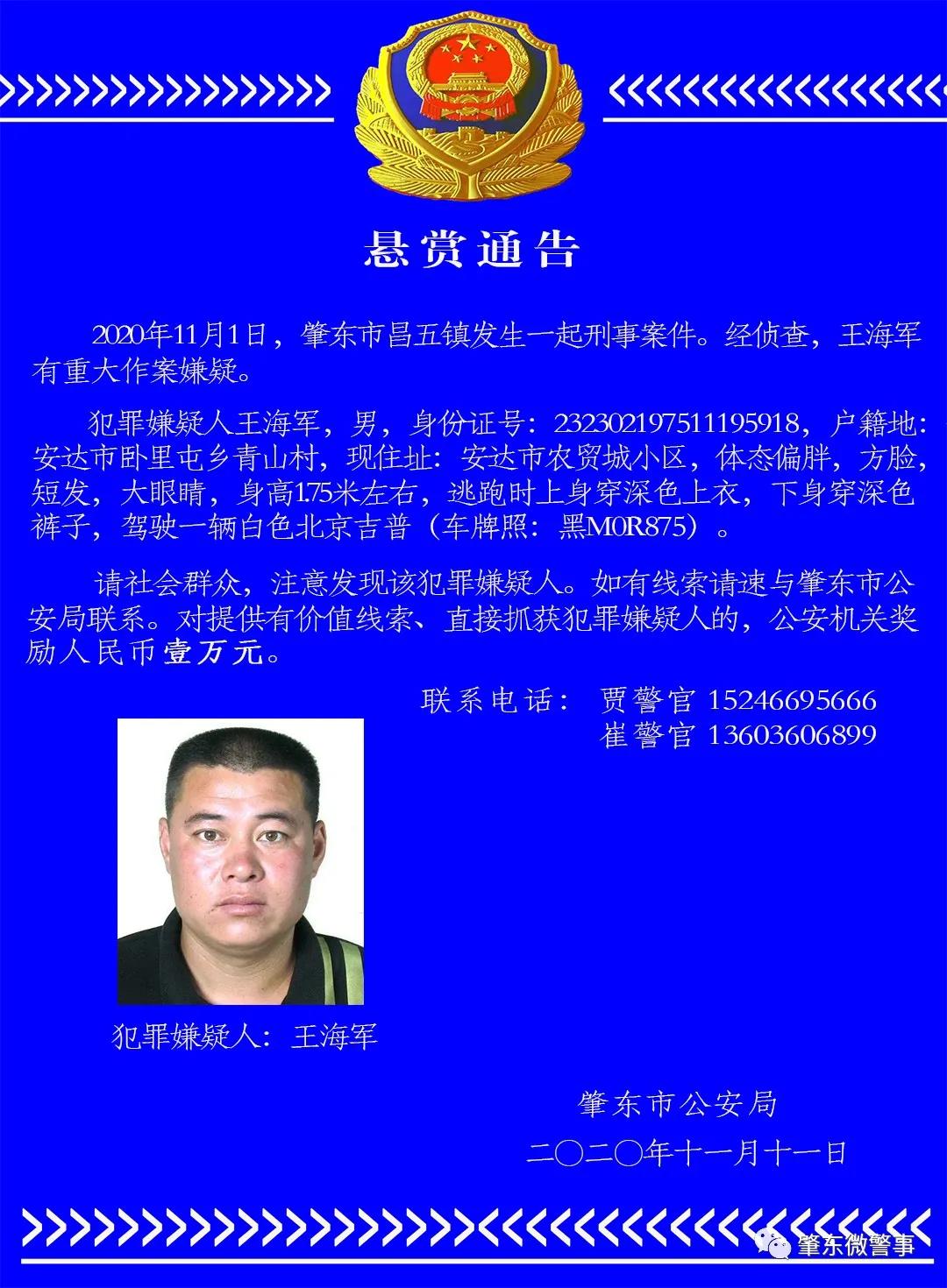 肇東市公安局:懸賞通告