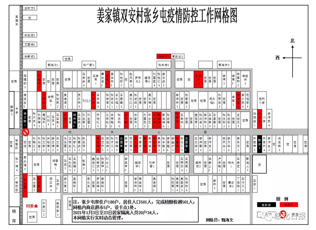 在姜家鎮(zhèn)其它村屯也同樣都掛上了這樣的網(wǎng)格圖。自疫情防控工作以來,姜家鎮(zhèn)統(tǒng)一繪制疫情防控工作網(wǎng)格圖,用網(wǎng)格圖織密“防控網(wǎng)”,以精細(xì)化的網(wǎng)格管理來準(zhǔn)確掌握重點(diǎn)人員變化情況,達(dá)到管控信息準(zhǔn)確、指揮反應(yīng)快速、措施防控嚴(yán)密,讓防控部署上墻又上心。