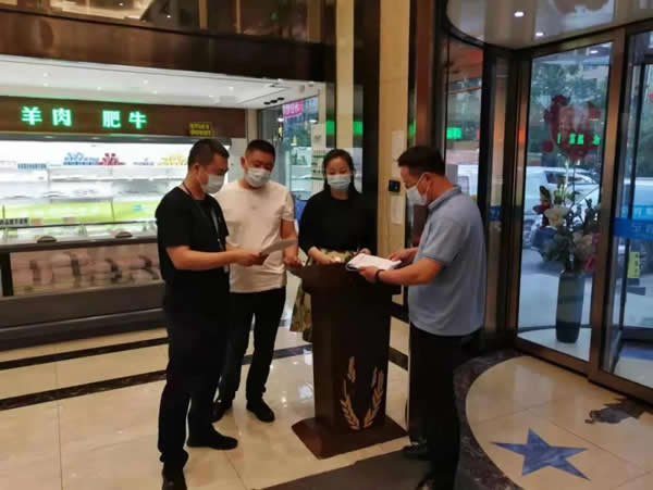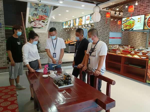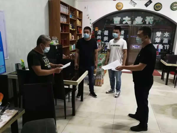 下午13時(shí),我與志州對(duì)轄區(qū)2家大型餐飲場(chǎng)所進(jìn)行了日常巡查,局里負(fù)責(zé)督導(dǎo)的兩位同志就趕到啦。我們4個(gè)人一起投入疫情防控工作中。