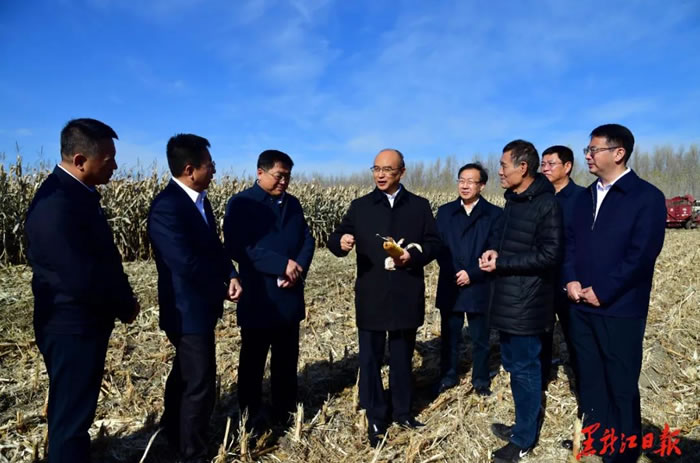 秋天的田野一派豐收景象。向陽鄉(xiāng)日新村秋收現場機械轟鳴,許勤健步走在剛剛收獲的地塊上,手拿玉米棒與農技人員細算增產增收賬,詳細了解品種、產量、成熟度、收獲進度等情況。他強調,今年又是一個豐收年,要抓住晴好天氣搶收,力爭10月25日之前完成收獲任務。要深化農業(yè)供給側結構性改革,調優(yōu)農業(yè)種植結構,引進培育高產量、高質量、高營養(yǎng)成分的新品種,發(fā)揮寒地、黑土優(yōu)勢,打造綠色有機、非轉基因、富硒等龍江特色農業(yè)品牌,發(fā)展科技農業(yè)、綠色農業(yè)、質量農業(yè)、品牌農業(yè),提高農業(yè)比較效益,促進持續(xù)穩(wěn)定增收。停在地頭的國產大型農業(yè)機械引起了許勤的濃厚興趣,他說,我省是裝備制造業(yè)基地,也是農業(yè)大省,發(fā)展農機裝備制造業(yè)大有可為,要加強研究謀劃,做好這篇大文章。