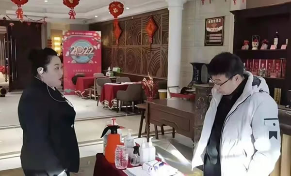 為確保節(jié)日期間全市大型餐飲疫情防控安全,經(jīng)局黨組會研究決定,抽調(diào)了34名駐店防控人員分派到各監(jiān)管分局,分赴各大型餐飲單位進行駐店監(jiān)督,重點監(jiān)督檢查承辦大型宴會單位是否嚴格落實“測溫掃雙碼戴口罩”,顧客是否持有48小時內(nèi)有效核酸證明。