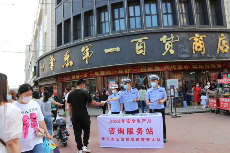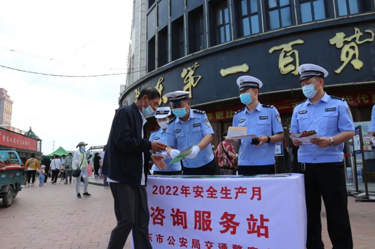 2022年6月是第21個全國“安全生產月”,為進一步加大安全生產宣傳力度,普及安全知識,切實做好道路交通事故預防工作,有效提高廣大交通參與者的交通安全意識、法律意識、文明意識,6月16日上午9時,肇東市公安局交警大隊在一百商圈開展“" />