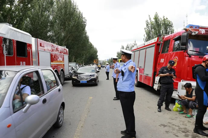 搶險(xiǎn)救援中,巡特警大隊(duì)充分發(fā)揚(yáng)骨干先鋒作用,快速反應(yīng)、迅速集結(jié),多次冒險(xiǎn)通過涉水路段,第一時(shí)間趕赴搶險(xiǎn)救援現(xiàn)場,解救被困群眾,疏導(dǎo)滯留車輛,轉(zhuǎn)移群眾財(cái)產(chǎn)。交警大隊(duì)密切關(guān)注天氣變化,加強(qiáng)危險(xiǎn)地段警戒,及時(shí)設(shè)置遠(yuǎn)端管控點(diǎn),對(duì)車輛和人員進(jìn)行分流處置,向社會(huì)公布道路交通狀況和行車路線,確保救援車輛順暢通行。派出所全面疏散、轉(zhuǎn)移群眾,及時(shí)排查險(xiǎn)情,清除安全隱患,加強(qiáng)受災(zāi)區(qū)域巡邏,切實(shí)維護(hù)人民群眾生命財(cái)產(chǎn)安全。