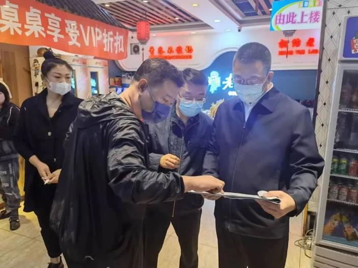 單奎副市長(zhǎng)一行重點(diǎn)檢查了餐飲、藥店以及鴻泰水果批發(fā)市場(chǎng)、陽(yáng)光農(nóng)貿(mào)市場(chǎng)等業(yè)態(tài),對(duì)各場(chǎng)所進(jìn)門測(cè)溫、掃碼、戴口罩以及消殺等防控措施執(zhí)行情況進(jìn)行了細(xì)致檢查。