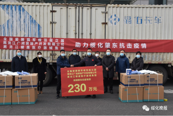 11月24日,正值肇東市抗擊新冠疫情關(guān)鍵時刻,肇東籍企業(yè)家、立國集團董事局主席寇立國,攜手黑龍江銀嘉醫(yī)療器械集團董事長朱宏偉、黑龍江廣潤房地產(chǎn)開發(fā)有限公司董事長馬麗,向肇東市捐贈總價值230萬元的防疫物資。