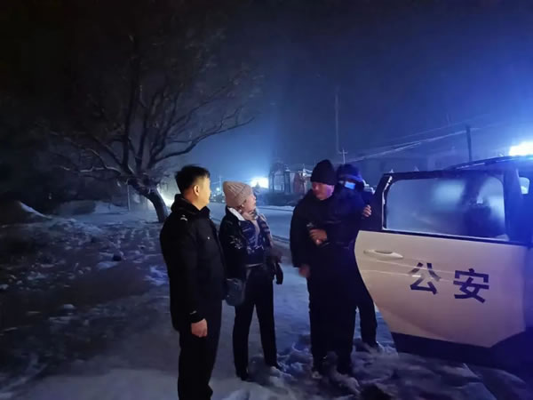 3月14日晚9時(shí)許,天空飄著鵝毛般的大雪,安民派出所接到群眾報(bào)警稱:“在安民鄉(xiāng)安民村李家圍子屯,301國道東側(cè),有一名頭戴黑色帽子,身穿黑色棉服和黑色褲子的男子,不知道什么原因躺在路邊”,接到報(bào)警后,民警楊忠孝立即帶領(lǐng)輔警張興宇趕赴報(bào)警現(xiàn)場(chǎng),經(jīng)過現(xiàn)場(chǎng)了解,發(fā)現(xiàn)該人為智障人員,無法準(zhǔn)確有效地表達(dá)個(gè)人信息,且身上也沒有任何能證明身份信息的證件,具體住址也說不清楚。只能斷斷續(xù)續(xù)的表達(dá)自己和母親的名字,但無法提供聯(lián)系方式,經(jīng)過民警再三溝通,他說是在廣場(chǎng)上扭秧歌,扭完后想回家,在經(jīng)過一個(gè)天橋后,迷失了方向,就走到這來了。民警楊忠孝分析,該人應(yīng)該是從市區(qū)來的,因?yàn)樗岬教鞓,安民所轄區(qū)最近的城市就是安達(dá)市,他應(yīng)該是從安達(dá)市方向來的,將群眾領(lǐng)到安民派出所后,輔警張興宇為他買了熱乎的食物并安撫其情緒,通過工作得知該人叫郭某東是安達(dá)市朝陽區(qū)居民,楊忠孝立即與安達(dá)市朝陽派出所取得聯(lián)系,安達(dá)市朝陽派出所工作人員表示,郭某東的父母已向派出所報(bào)警,說孩子已走失一下午了,父母很著急,我們這邊也出動(dòng)警力正在幫忙尋找,民警楊忠孝與他的父母取得聯(lián)系后,告知人已安全找到,看著天空飄下的大雪,楊忠孝決定和張興宇用警車把郭某東安全送回家里,以免發(fā)生其他意外。