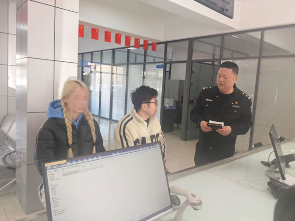 3月27日,肇東市公安局出入境管理大廳迎來了一對神情焦急的夫婦尋求幫助,肇東居民姜先生攜外籍妻子趕到出入境接待大廳咨詢辦理外國人簽證的相關問題,工作人員詢問得知,姜先生與妻子卡琳娜因工作原因長期居住在浙江省金華市,由于妻子卡琳娜簽證問題夫妻二人輾轉千里回肇東辦理簽證,民警秉承“群眾利益無小事、為民服務無終點”的理念,在審核基礎資料后,協(xié)助兩人僅用半小時就成功辦理了簽證,解決了群眾的實際困難,提高了群眾的獲得感、幸福感、安全感。