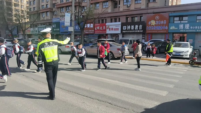 為深入推進(jìn)道路交通安全整治年工作,確保學(xué)生出行安全,綏化市公安局交通警察支隊(duì)肇東大隊(duì)持續(xù)推進(jìn)護(hù)學(xué)行動(dòng),充分發(fā)揮“護(hù)學(xué)崗”“高峰勤務(wù)”等護(hù)學(xué)機(jī)制作用,積極推廣“校家警”護(hù)學(xué)模式,以民輔警為主,交通志愿者為輔,學(xué)校教職員工、學(xué)生家長(zhǎng)聯(lián)動(dòng)" />