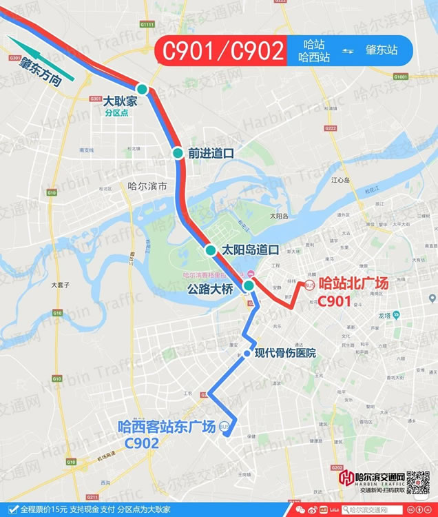 肇東至哈市城際公交分為兩條線路。其中,C901路始至哈站,C902路始至哈西站。主要站點途經(jīng)“肇東火車站”、“三道街”站、“大耿家”站、“前進(jìn)道口”站、“太陽島道口”站、“公路大橋”站、“哈站北廣場公交首末站”、“哈西客站東廣場”站" />