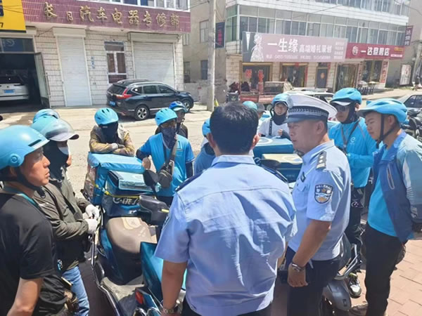 活動(dòng)中,民警首先同企業(yè)負(fù)責(zé)人進(jìn)行了深入詳談,要求企業(yè)加強(qiáng)對(duì)員工的交通安全教育,時(shí)刻繃緊安全神經(jīng),把交通安全放在工作首位。結(jié)合外賣(mài)騎手們的職業(yè)習(xí)慣、駕駛特點(diǎn)等,通過(guò)面對(duì)面講解的方式,強(qiáng)調(diào)了正確佩戴安全頭盔的重要性,要求騎手在行車(chē)過(guò)程中做到不接打電話、不酒后駕駛、不逆行、不闖紅燈、不走機(jī)動(dòng)車(chē)道。通過(guò)交通事故典型案例對(duì)外賣(mài)騎手開(kāi)展警示教育,讓大家意識(shí)到騎乘電動(dòng)車(chē)戴好安全頭盔的重要性,并向外賣(mài)騎手詳細(xì)講解相關(guān)法律法規(guī),現(xiàn)場(chǎng)教授正確佩戴安全頭盔的方法。