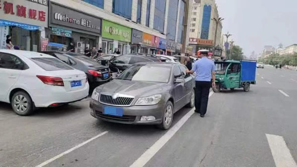 行動中,執(zhí)勤民輔警按照“宣傳在先,處罰在后”原則,對車流、人流聚集的商業(yè)街,以及主干道道路違法停車行為突出的道路,實施高頻度、高密度的滾動整治。對短暫停車行為,駕駛員未下車的以教育勸離為主,引導將車輛規(guī)范停放到指定區(qū)域;對無視交通法規(guī),在機動車道、人行道、非機動車道的違停車輛,現(xiàn)場拍照粘貼違法停車告知單,對違規(guī)車輛進行處罰;對阻礙交通通行能力,造成安全隱患的,堅決予以拖離;對長期占道的“僵尸車”,聯(lián)系車主督促其及時進行處理或主動將車開走,無法聯(lián)系到車主的或電話告知仍未處理的,統(tǒng)一將其拖離現(xiàn)場。