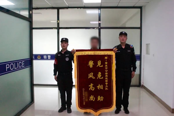 8月10日,齊齊哈爾市民張先生來到肇東市公安局巡特警大隊(duì),將一面印有“見危相助,警風(fēng)高尚”的錦旗送到巡特警隊(duì)員手中,以表感激之情。
