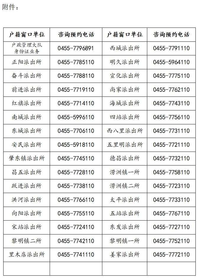 附件:公安機關(guān)戶籍窗口單位咨詢及預約電話