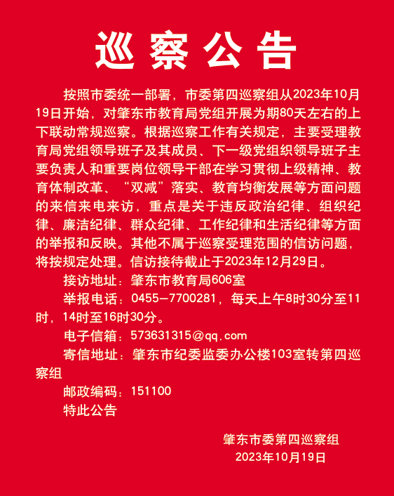 2023年10月19日上午,市委第四巡察組對市教育局黨組巡察工作動員會議在市教育局召開。市委巡察工作領(lǐng)導(dǎo)小組成員劉向軍,市委第四巡察組組長李偉宏出席會議并講話,對此次巡察工作的重大意義、目標(biāo)任務(wù)、方法步驟做出了具體要求。