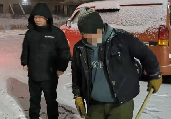 2023年11月22日,肇東市迎來(lái)今冬第三場(chǎng)大雪,東城派出所的民警在巡邏過(guò)程中發(fā)現(xiàn),在轄區(qū)破舊房屋內(nèi)有兩名男子衣著單薄,露宿時(shí)也無(wú)被褥,裹著層層疊疊的幾件外套蜷縮著身子躺在屋內(nèi)!澳憬惺裁疵郑俊薄澳慵以谀睦?你要去哪?”……民警上前與其交談。經(jīng)過(guò)詳細(xì)詢問(wèn)與查詢,民警了解到這兩名男子是流浪人員,在肇東既沒(méi)有親人也沒(méi)有住所,自己也沒(méi)有收入來(lái)源,每天只能找這些破舊房屋過(guò)夜。寒冬來(lái)襲,氣溫驟降,一直在這里睡也不是個(gè)辦法,考慮到兩名男子的身體情況,還可能會(huì)因凍受傷。于是,巡邏民警便將其接回派出所內(nèi),送上熱水和熱乎飯。為了讓兩名流浪者能得到更好的照顧,經(jīng)與救助站聯(lián)系,在當(dāng)晚就將這兩名流浪人員安全護(hù)送至救助站。目前,已得到妥善安置。