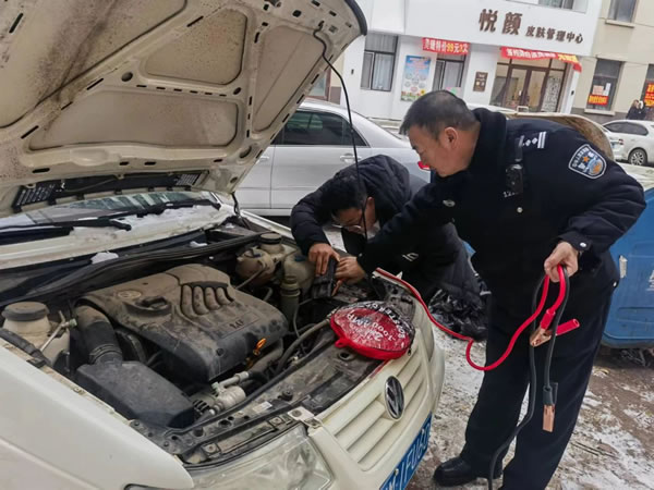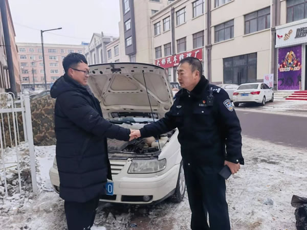 近日,肇東市公安局警格員(交警大隊民警張曉偉)及時幫助群眾對電打火啟動車輛,獲得社區(qū)群眾高度贊揚。