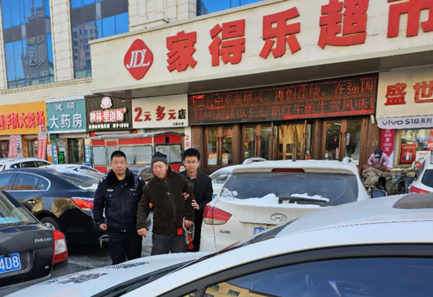1月22日11時許,紅旗派出所接到轄區(qū)家得樂超市工作人員報警稱超市內(nèi)有一名老人找不到家了,接到報警后紅旗派出所教導(dǎo)員楊玉軍立即帶領(lǐng)輔警張國健、李建成到達現(xiàn)場,向老人耐心細致地詢問情況,可老人只記得自己的名字及家住肇東市二糧庫樓,并無法記清具體單元及門牌號,且身上沒有任何證件、手機及家屬聯(lián)系方式,行動也十分不便。