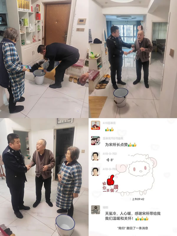 五一假期這天,萬福國際小區(qū)因線路問題,突然停水,A棟3單元的兩位老人剛要做飯,卻發(fā)現停水了,由于年紀大了下樓打水不方便,于是便在網格群里說了一句家里沒有水做不了飯。這一訴求被同在群內的奮斗派出所所長宋艷冬看在眼里,于是不到十分鐘便親自把生活用水送到了兩位老人家中,兩位老人激動地拉著宋所長的手,眼里飽含淚光和感激!