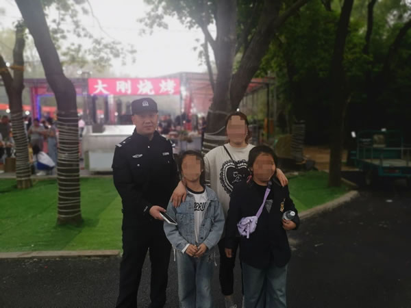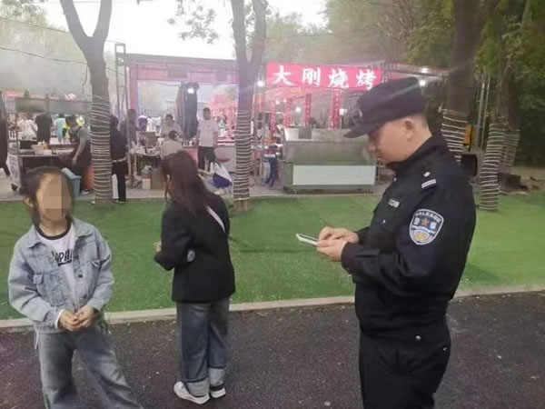 此時(shí),正在美食節(jié)執(zhí)勤的民警們發(fā)現(xiàn)了這一情況,他們立刻分成兩組,一組將小女孩帶到身邊,安撫她倆的情緒;一組疏散圍觀的群眾,恢復(fù)會(huì)場秩序。民警們變成了小女孩的“臨時(shí)大哥哥”,在他們的不斷努力下,兩個(gè)小女孩終于破涕為笑,說出了母親的名字和電話號(hào)碼。民警立刻撥通了孩子母親電話,五分鐘后,小女孩的母親焦急地前來認(rèn)領(lǐng)。經(jīng)過身份信息核對無誤,執(zhí)勤民警將小女孩交給她母親。見到兩個(gè)小女孩安然無恙,家長非常激動(dòng)地拉著執(zhí)勤民警的手連聲道謝。