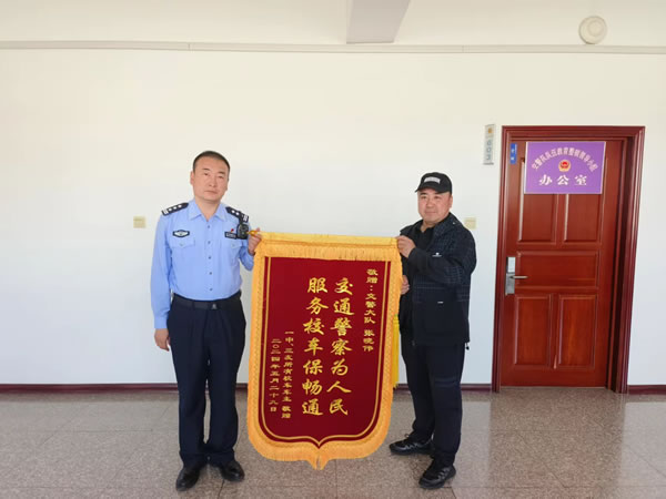 2024年6月4日上午,三位校車車主將一面寫有“交通警察為人民 服務(wù)校車保暢通”的錦旗送到肇東市公安局交通警察大隊,代表一中、三中所有校車車主感謝大隊民警想車主之所想、急車主之所急,積極主動幫助校車車主解決停車難問題。