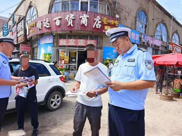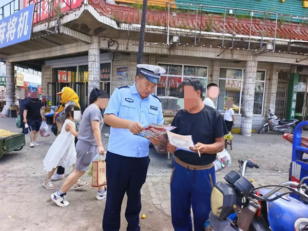在昌五鎮(zhèn)中心商業(yè)區(qū),這里聚集了周邊鄉(xiāng)鎮(zhèn)眾多村屯群眾在此購物、游玩,人流、車流不息。宣傳民警深入到集市、商場等人員密集區(qū)域,結(jié)合當(dāng)前交通安全宣傳工作重點活動實際,通過大篷車巡回宣講、懸掛宣傳條幅、發(fā)放交通安全宣傳資料等多種宣傳方式,與群眾面對面溝通,、解答群眾關(guān)于交通法律法規(guī)方面的疑問,向廣大農(nóng)民群眾宣傳“一盔一帶”的重要性和農(nóng)用車違法載人、客貨混載、三超一疲勞、無牌無證、酒后駕駛等交通違法行為的危害性。宣傳講解《黑龍江省電動車管理條例》相關(guān)內(nèi)容,教育引導(dǎo)農(nóng)民群眾要遵守交通安全法律法規(guī),提高交通安全意識,自覺抵制各類交通違法行為。爭做文明出行的踐行人和傳播者。