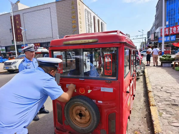 同時,為沒有粘貼反光標(biāo)識和反光標(biāo)識殘缺、陳舊的農(nóng)用車輛、三輪車等免費粘貼安全反光標(biāo)識,提升車輛夜間通行安全系數(shù),為農(nóng)民朋友駕車出行提供安全保證,筑牢道路交通安全防線。