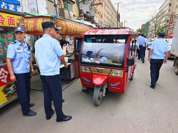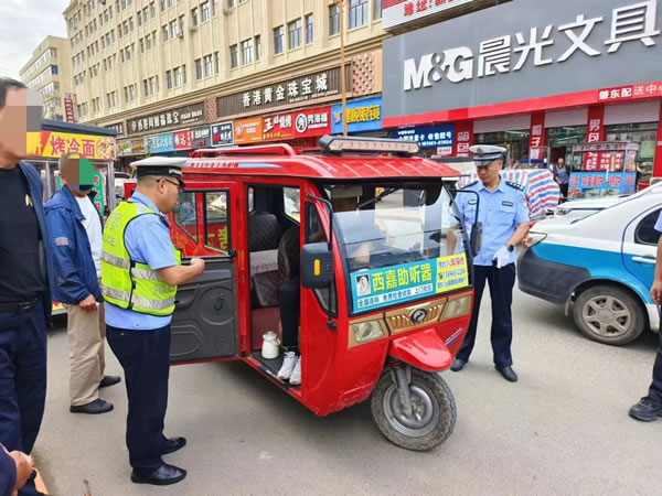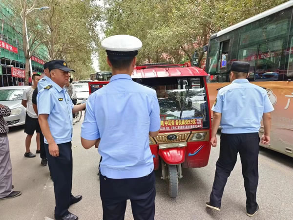 行動中,聯(lián)合執(zhí)法大隊針對夏季交通管理工作特點,結(jié)合轄區(qū)道路安全形勢,以降事故為工作重心,科學(xué)安排警力。堅持“逢違必究、逢違必查”的工作原則,緊盯農(nóng)貿(mào)市場、商圈、車站等重點區(qū)域,采取定點檢查和巡邏管控相結(jié)合的方式,開展電動三輪車突出違法行為整治行動。嚴查無牌無證上路行駛、違法載客、隨意穿插掉頭、逆向行駛、酒后駕駛、亂停亂放、不佩戴安全頭盔等突出交通違法行為,做到及時發(fā)現(xiàn)、及時糾正、及時處罰,形成高壓嚴管態(tài)勢,震懾交通違法行為。