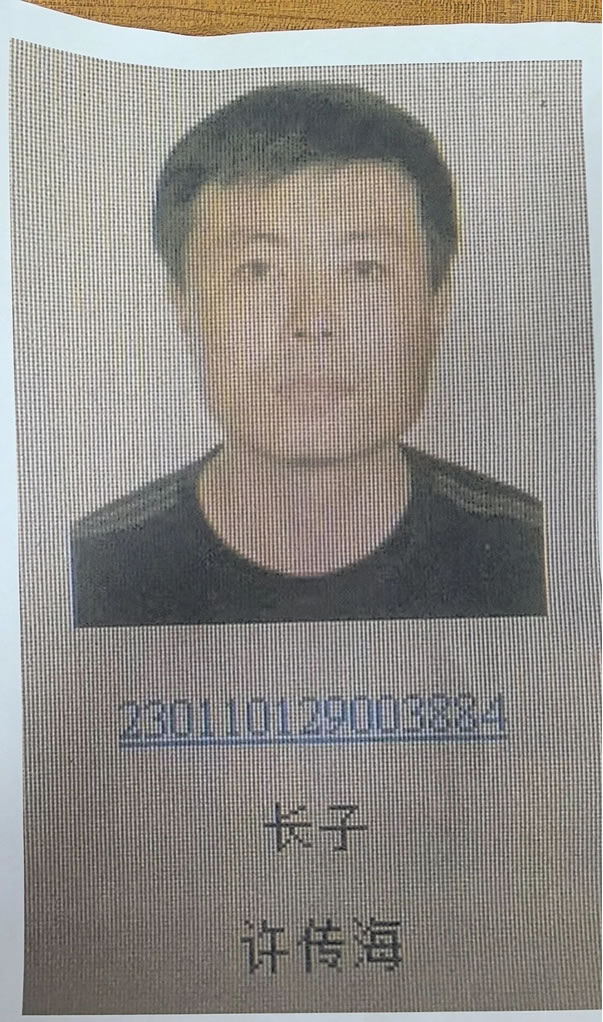 被執(zhí)行人:許傳海,男,1970年4月4日出生,漢族,住黑龍江省哈爾濱市香坊區(qū)成高子鎮(zhèn)和平村勝利屯;公民身份證號碼:230106197004042514。