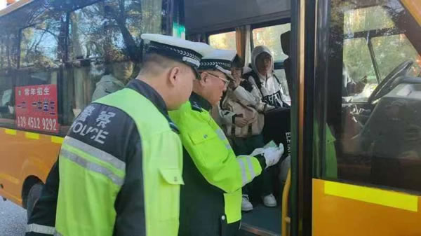 行動中,民警逐車核查校車手續(xù)是否齊全,車輛技術狀態(tài)是否符合安全運行條件,以及車輛維護保養(yǎng)等情況。重點檢查了車輛座位數(shù)、核載人數(shù)、駕駛?cè)速Y質(zhì)、校車外觀標識、安全錘、安全帶、滅火器、安全門等,并叮囑駕駛?cè)艘斏黢{駛,時刻把安全放在第一位。