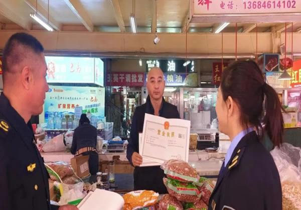 “上門服務(wù)補照”活動舉辦后,贏得了廣大商戶的一致好評,此次活動共計幫助農(nóng)貿(mào)市場內(nèi)19家商戶補辦了營業(yè)執(zhí)照。