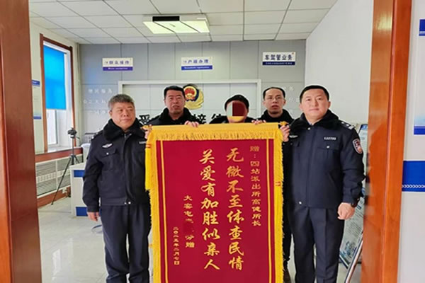 近日,四站鎮(zhèn)菜園子村李某將一面寫有“無(wú)微不至體察民情、關(guān)愛(ài)有加勝似親人”的錦旗送到了四站派出所所長(zhǎng)高劍的手中,以表達(dá)對(duì)高劍所長(zhǎng)及派出所全體工作人員的感激之情。