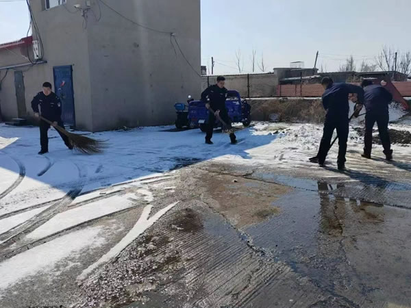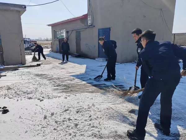 受強(qiáng)冷空氣影響,3月26日肇東市普降大雪。由于氣溫原因,積雪大面積融化。3月27日,尚家派出所民警了解到轄區(qū)殘疾獨(dú)居老人家中積雪融化,存在出行安全隱患。于是,尚家派出所迅速組織警力,由“春苗”帶教民警帶領(lǐng)4名“春苗新警”攜帶鐵鍬、掃帚" />